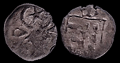 head, star between horns, rosette and crescent on sides.